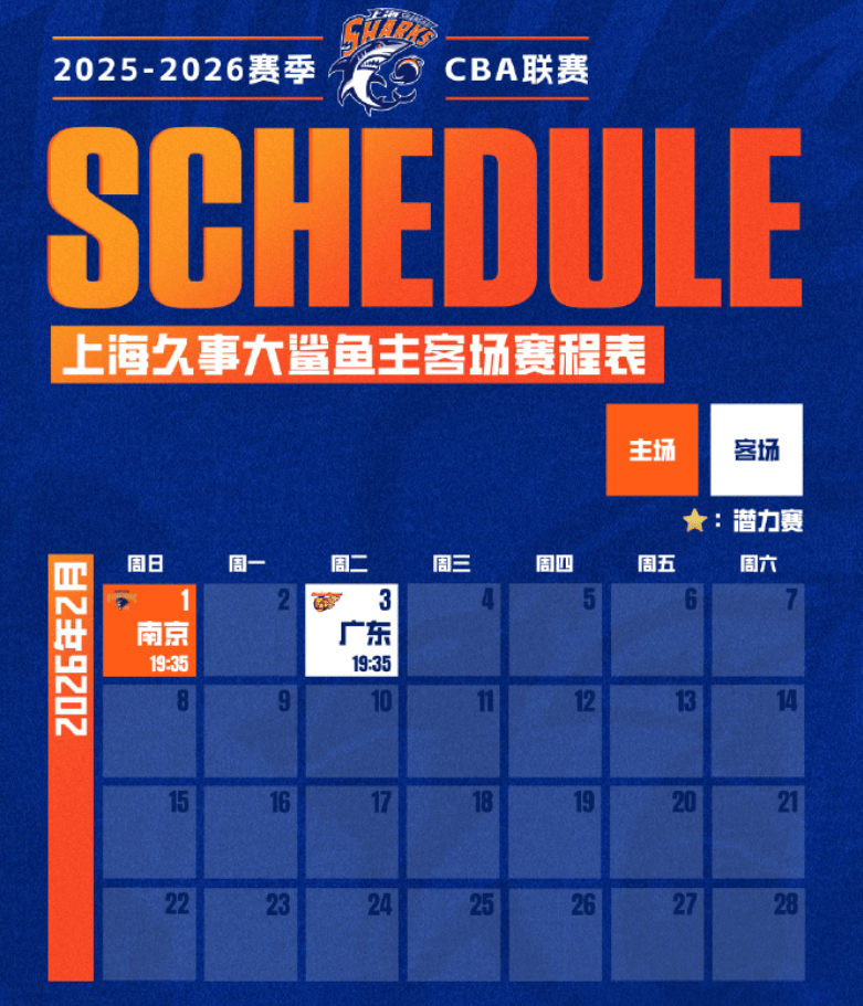 “上海久事男篮2025-2026赛季通例赛赛程表,请查收!