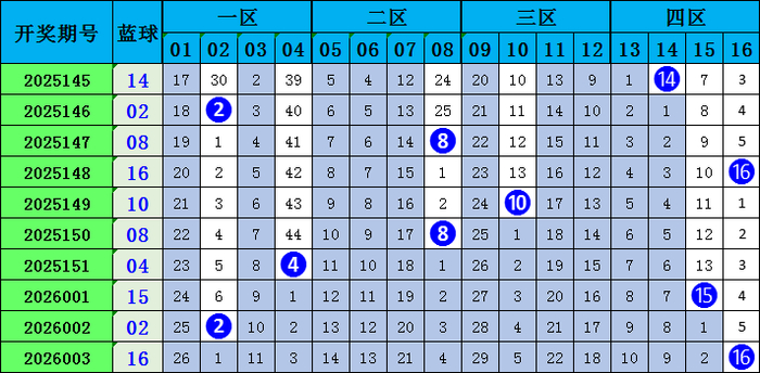 双色球蓝球详细分析: