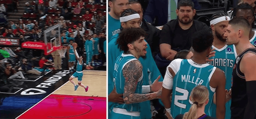 比赛临了技艺,黄蜂球员拉梅洛-鲍尔的一记扣篮激发了两边球员的突破。