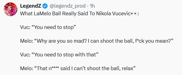 三球随后向世东谈主呐喊:”阿谁n****(对黑东谈主不尊重的称号)不让我扣篮,放平缓!“
