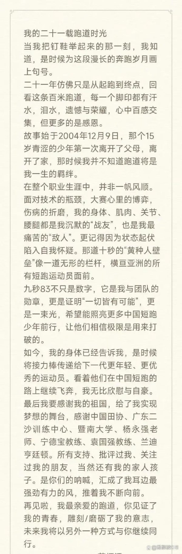 苏炳添退役告别赛场,九秒八三成亚洲传闻,中国速率还能传承吗