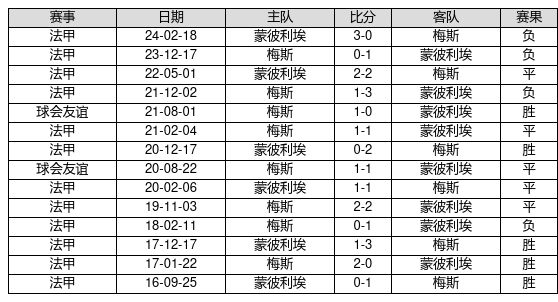 梅斯 VS 蒙彼利埃两队近10年的交战次数为14场,梅斯5胜5平4负,赢球概率为35.7%,平局概率为35.7%,输球概率为28.6%。