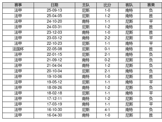 南特 VS 尼斯两队近10年的交战次数为20场,南特6胜6平8负,赢球概率为30.0%,平局概率为30.0%,输球概率为40.0%。
