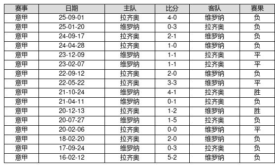 维罗纳 VS 拉王人奥两队近10年的交战次数为16场,维罗纳2胜4平10负,赢球概率为12.5%,平局概率为25.0%,输球概率为62.5%。