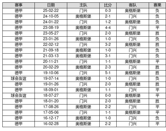 门兴 VS 奥格斯堡两队近10年的交战次数为21场,门兴6胜7平8负,赢球概率为28.6%,平局概率为33.3%,输球概率为38.1%。