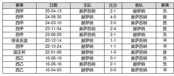 赫罗纳 VS 奥萨苏纳两队近10年的交战次数为11场,赫罗纳4胜3平4负,赢球概率为36.4%,平局概率为27.3%,输球概率为36.4%。