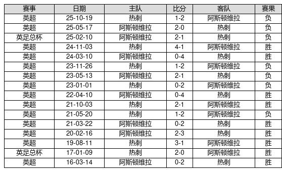 热刺 VS 阿斯顿维拉两队近10年的交战次数为16场,热刺9胜0平7负,赢球概率为56.2%,平局概率为0.0%,输球概率为43.8%。