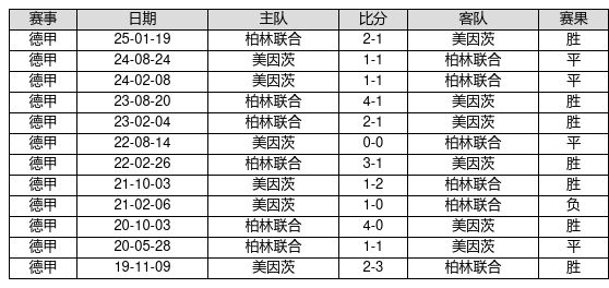 柏林覆没 VS 好意思因茨两队近10年的交战次数为12场,柏林覆没7胜4平1负,赢球概率为58.3%,平局概率为33.3%,输球概率为8.3%。